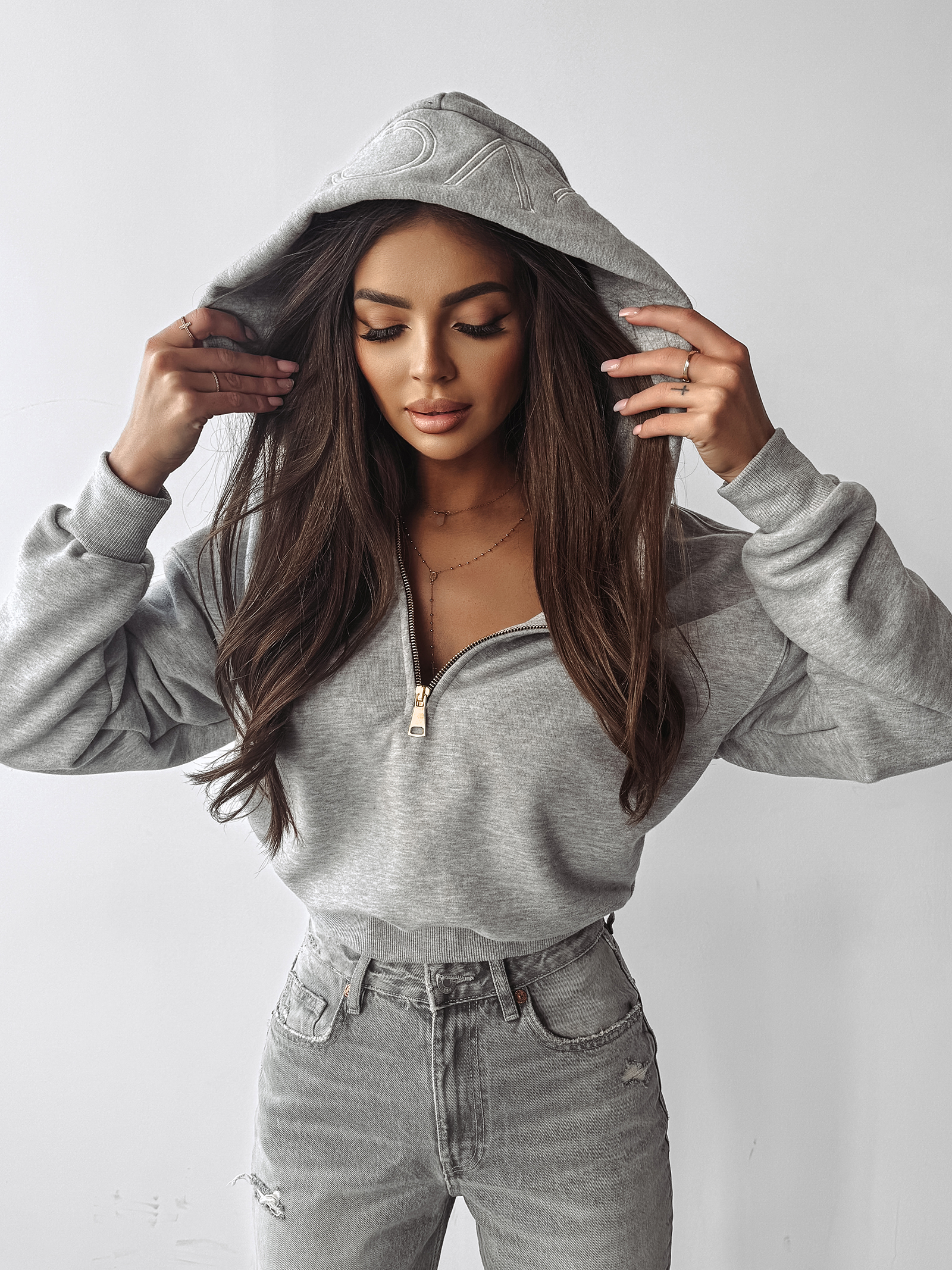 Bluza IRIS pozwala tworzyć wiele harmonijnych, stylowych zestawów. Idealnie pasuje do legginsów, prostych spodni dresowych, gładkich joggerów lub klasycznego denimu. Można zestawić ją z miękką puchową kurtką, dłuższą parką lub eleganckim płaszczem, tworząc spójny outfit w stylu premium casual.
