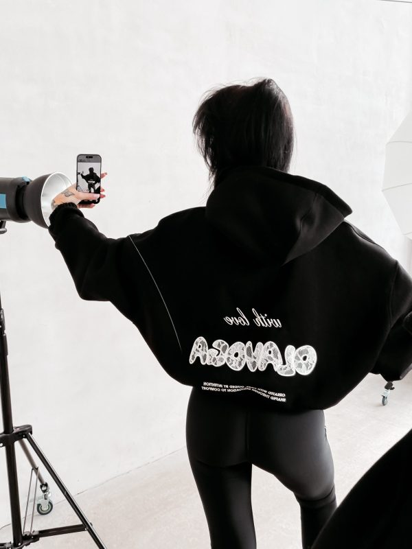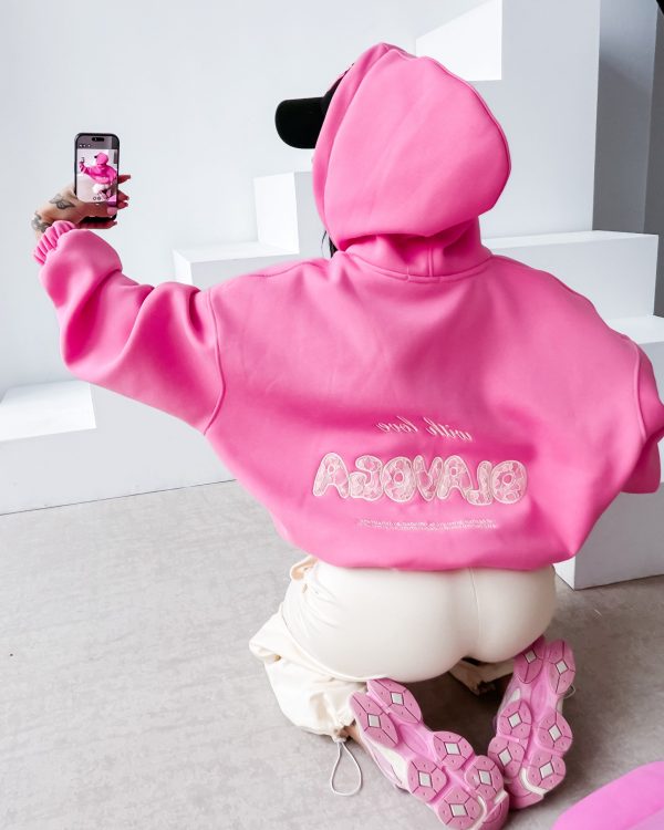 Oversize’owa bluza zapinana na zamek z kapturem wykonana z miękkiej, komfortowej dzianiny. Na plecach efektowna haftowana aplikacja „with love OLAVOGA” z koronkową strukturą oraz subtelny haft z przodu. Dół i rękawy zakończone elastycznymi ściągaczami. Ważne aspekty: luźny, komfortowy krój oversize, kaptur, zapięcie na suwak, miękka dzianina premium, haftowana aplikacja „with love OLAVOGA” na plecach, subtelne logo z przodu, rękawy zakończone ściągaczem.