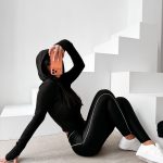 To model, który łączy miękki materiał z prostą, nowoczesną formą.