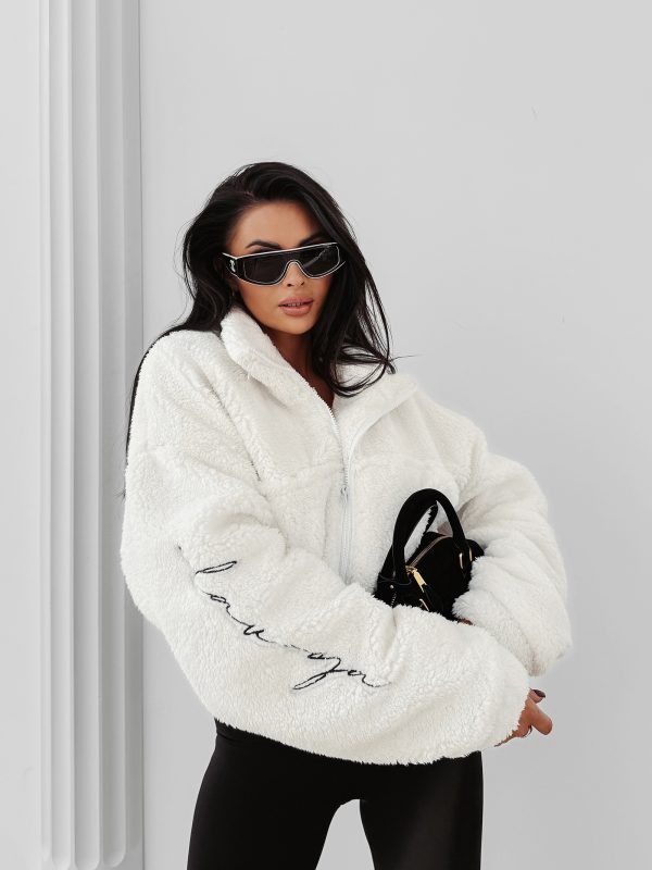 Model TEDI oferuje możliwość tworzenia stylizacji o nowoczesnym, nieco architektonicznym charakterze. Miękka struktura materiału teddy współgra z prostymi liniami spodni z wysokim stanem, legginsami o gładkiej powierzchni oraz denimowymi sylwetkami.