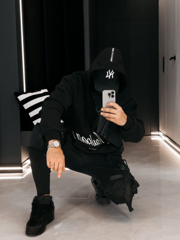 Bluza z kapturem wykonana z miękkiej, komfortowej dzianiny o swobodnym kroju. Z przodu ozdobna aplikacja z napisem oraz kieszeń kangurka, z tyłu minimalistyczne wykończenie z subtelnym detalem na kapturze. Dół i rękawy zakończone elastycznymi ściągaczami. Ważne aspekty: luźny, komfortowy krój, kaptur, miękka dzianina premium, ozdobna aplikacja z przodu, kieszeń kangurka, detal na kapturze, rękawy zakończone ściągaczem.