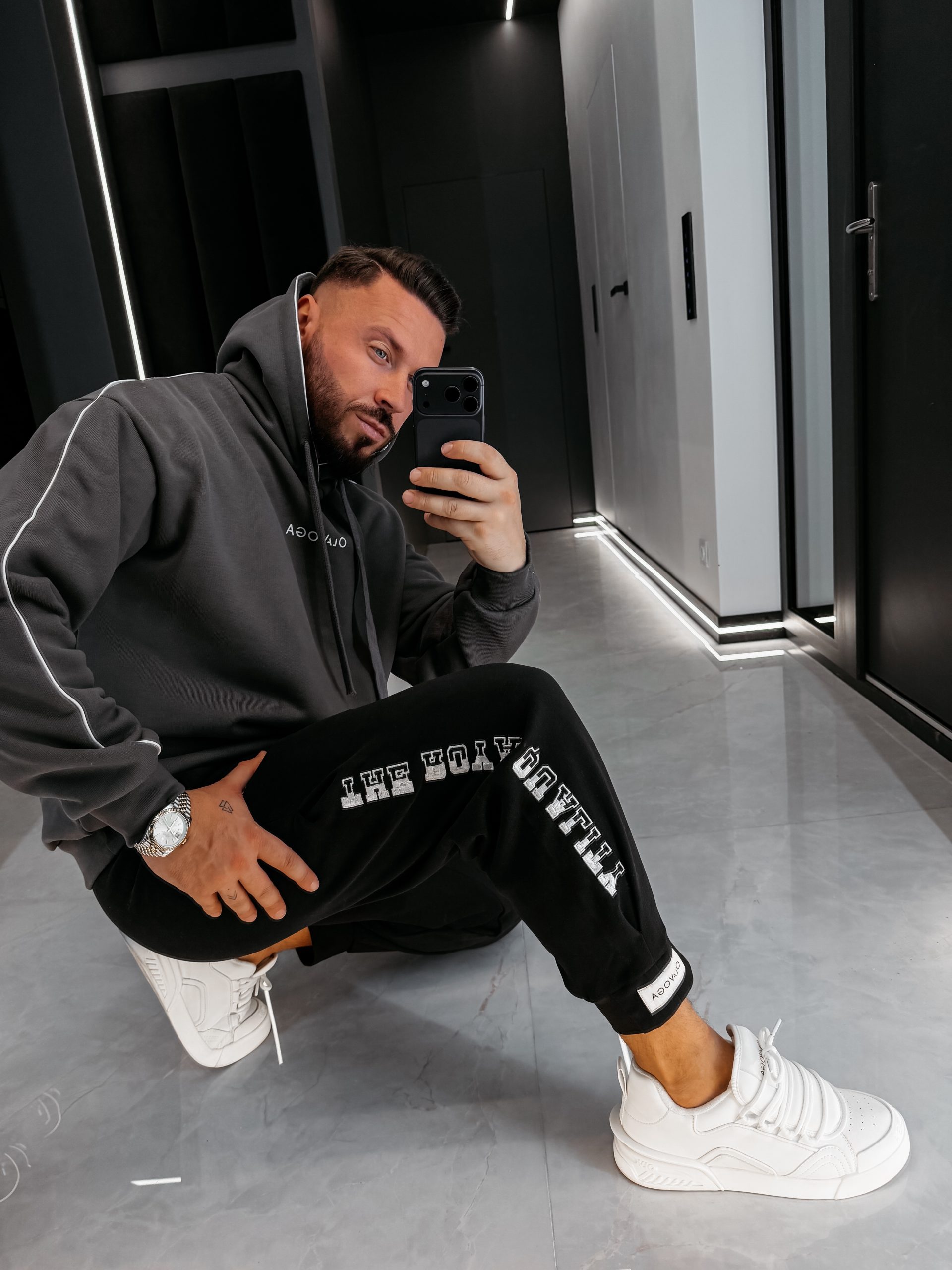 Bluza z kapturem wykonana z miękkiej, komfortowej dzianiny o swobodnym kroju. Z przodu ozdobna aplikacja z napisem oraz kieszeń kangurka, z tyłu minimalistyczne wykończenie z subtelnym detalem na kapturze. Dół i rękawy zakończone elastycznymi ściągaczami. Ważne aspekty: luźny, komfortowy krój, kaptur, miękka dzianina premium, ozdobna aplikacja z przodu, kieszeń kangurka, detal na kapturze, rękawy zakończone ściągaczem.