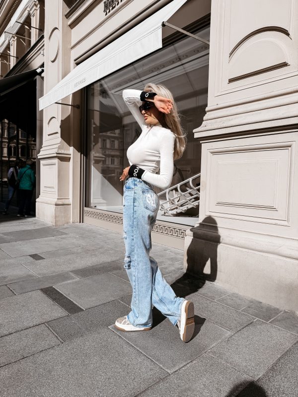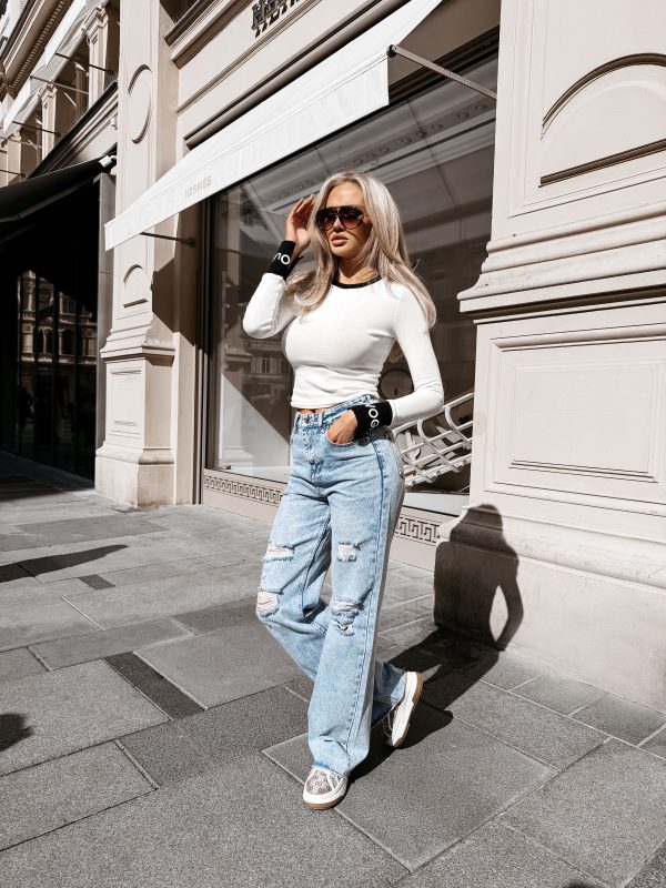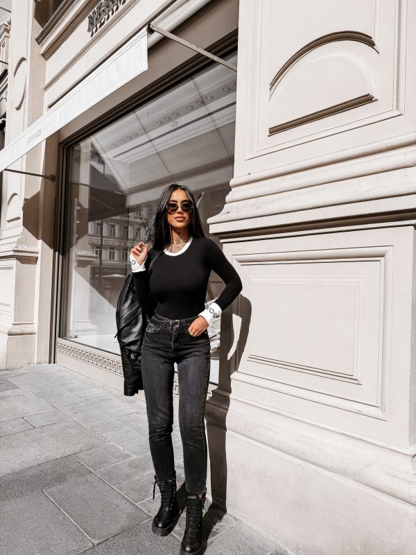 Dopasowany fason – długi rękaw – okrągły dekolt – kontrastowe wstawki – logowanie na rękawach