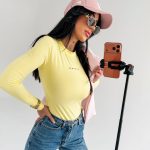 Elastyczny materiał nie krępuje ruchów, dlatego bluzka pozostaje wygodna przez cały dzień.