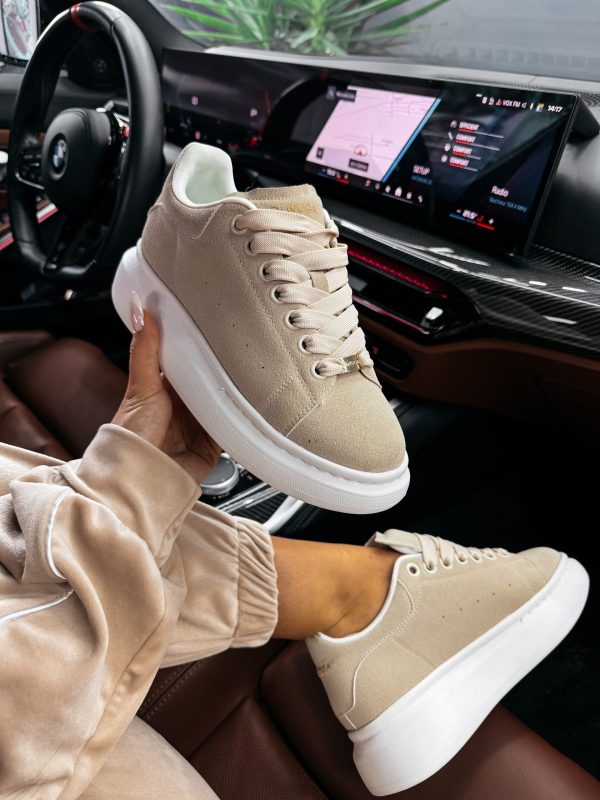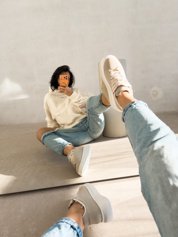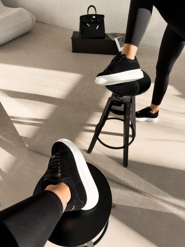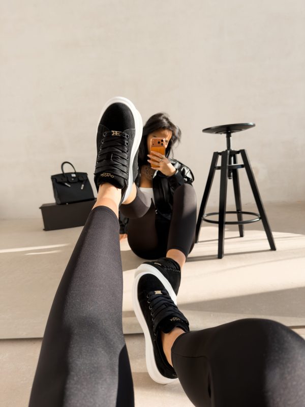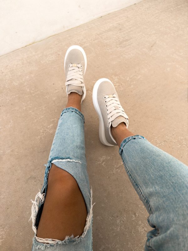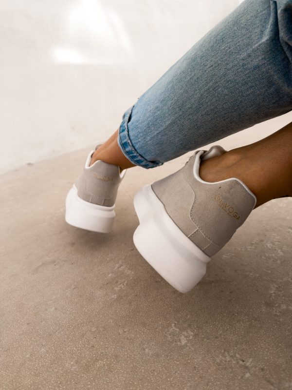 Minimalistyczne sneakersy wykonane z miękkiego materiału o eleganckim wykończeniu, osadzone na grubszej, komfortowej podeszwie. Subtelne złote detale i logo OLAVOGA nadają całości luksusowego charakteru. Ważne aspekty: sznurowane, miękki materiał o eleganckiej fakturze, złote detale i logo OLAVOGA, grubsza, wygodna podeszwa, miękka wyściółka.