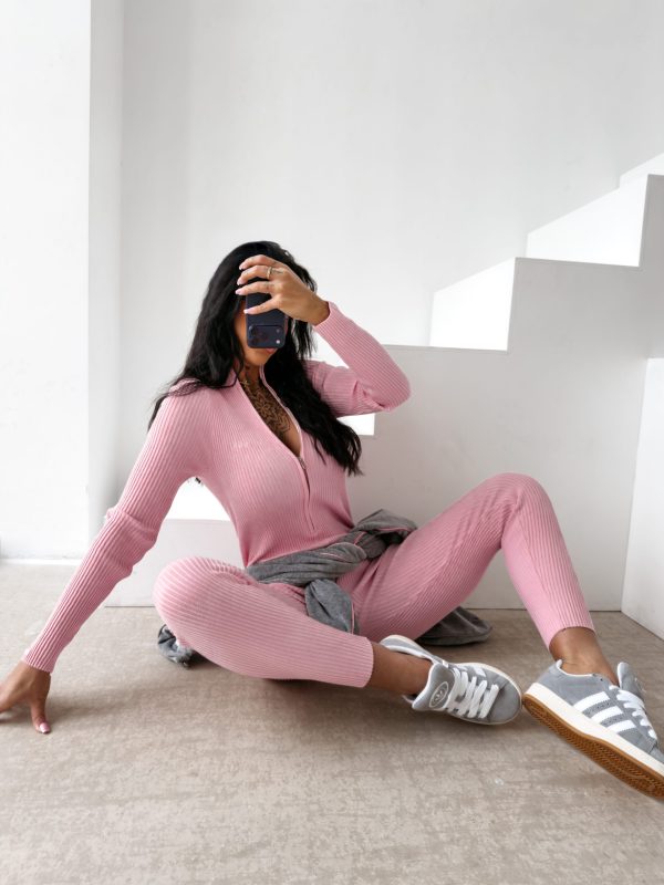 Idealnie przylegający, casualowy kombinezon o prążkowanej strukturze. Wykonany z wysokiej jakości materiału z domieszką wiskozy. Góra zapinana na suwak z subtelnym logo marki OLAVOGA, a przy mankiecie i biuście delikatne haftowane logo brandu w tonacji tkaniny.