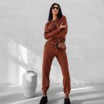 Już po pierwszym założeniu czujesz miękkość materiału, który elastycznie pracuje z ciałem. Bluza ma swobodny, lekko oversize’owy fason, natomiast spodnie z podwyższoną talią subtelnie modelują linię bioder. Co więcej, gładkie szwy i sprężyste ściągacze stabilizują formę, dzięki czemu komplet zachowuje kształt po wielu praniach. W efekcie nosisz go długo, wygodnie i bez kompromisów.
