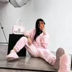 Na przodzie bluzy umieszczono logo OLAVOGA wykonane z delikatnie połyskującej aplikacji kryształkowej. Ten detal dodaje elegancji, nie tracąc jednak charakteru codziennego miękkiego stylu. Z kolei na plecach pojawia się efektowny, większy napis, który tworzy estetyczny, biżuteryjny akcent. Dzięki temu komplet PRISM nabiera wyjątkowego charakteru, idealnego dla kobiet, które lubią subtelny, lecz zauważalny blask.