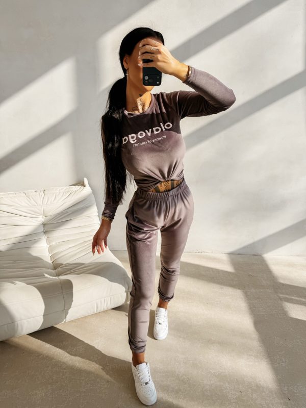 Komplet składający się z bluzy i spodni – komfortowa elastyczna tkanina – dopasowana bluza z długim rękawem – kontrastowe logo na froncie bluzy OLAVOGA – spodnie z elastycznym pasem zwężające się ku dołowi