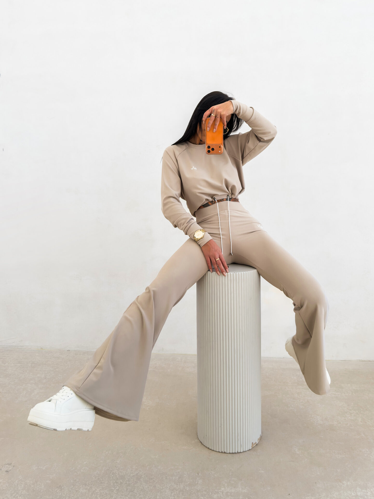 Komplet STONY szary można nosić z eleganckimi płaszczami, lekkimi puchówkami, minimalistycznymi trampkami lub klasycznymi sneakersami. Możliwości są niemal nieograniczone, ponieważ szarość w modzie premium pełni rolę koloru, który elegancko równoważy każdy element stylizacji.