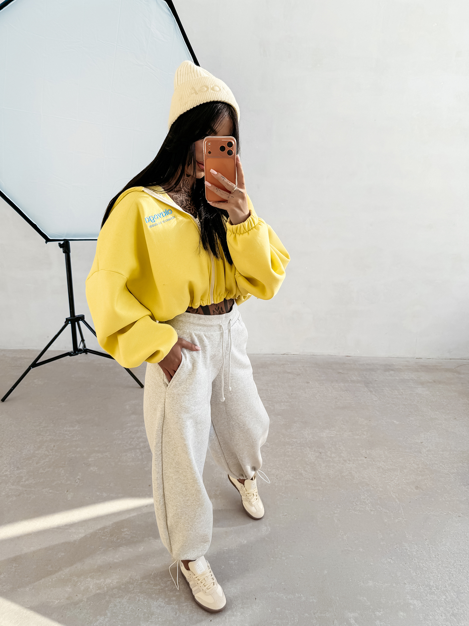 Komplet STONY szary można nosić z eleganckimi płaszczami, lekkimi puchówkami, minimalistycznymi trampkami lub klasycznymi sneakersami. Możliwości są niemal nieograniczone, ponieważ szarość w modzie premium pełni rolę koloru, który elegancko równoważy każdy element stylizacji.