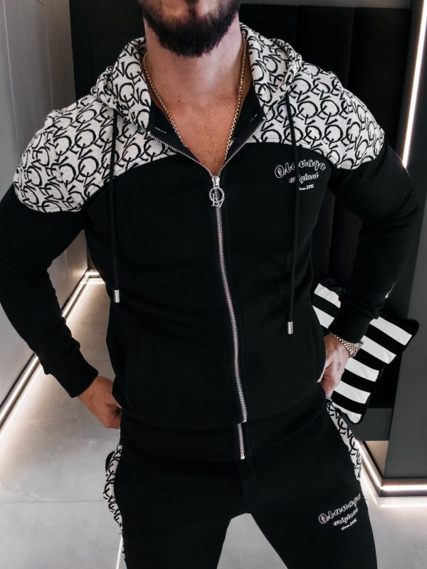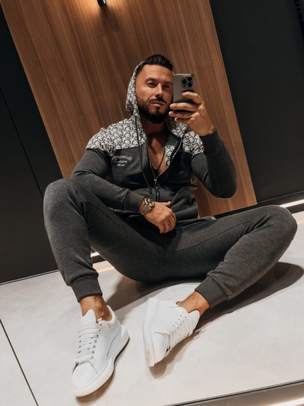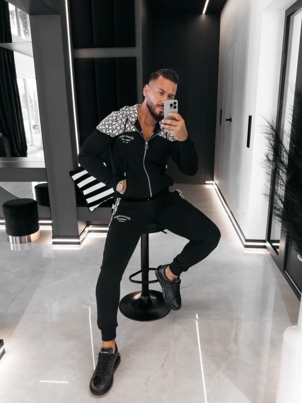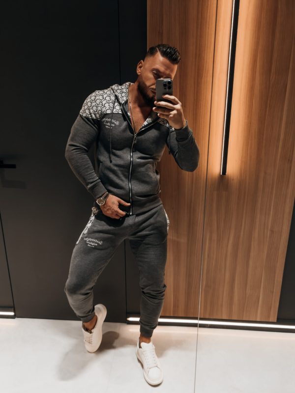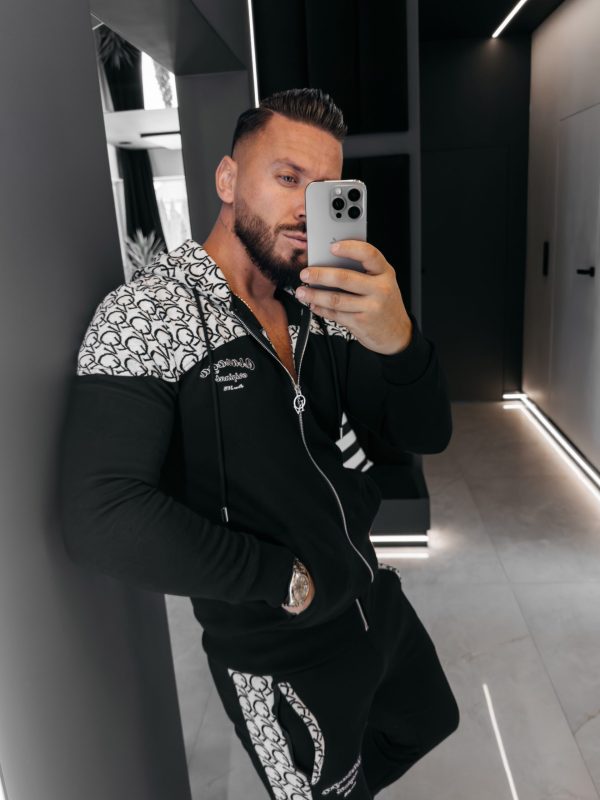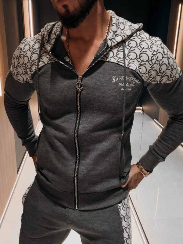 Komplet sportowy, wykonany z wysokiej jakości materiału z domieszką wiskozy. Góra – rozpinana bluza z kapturem oraz z rozpinanymi kieszeniami po bokach. Produkt posiada ciekawe zdobienie – dodatkowy logowany materiał u góry. Na proszę logo marki OLAVOGA. Dół – sportowe spodnie z rozpinanymi kieszeniami po bokach. Talia regulowana poprzez sznurek z logowanym agletem. Prążkowane ściągacze na brzegach. Na przodzie logo brandu w ciekawej grafice.