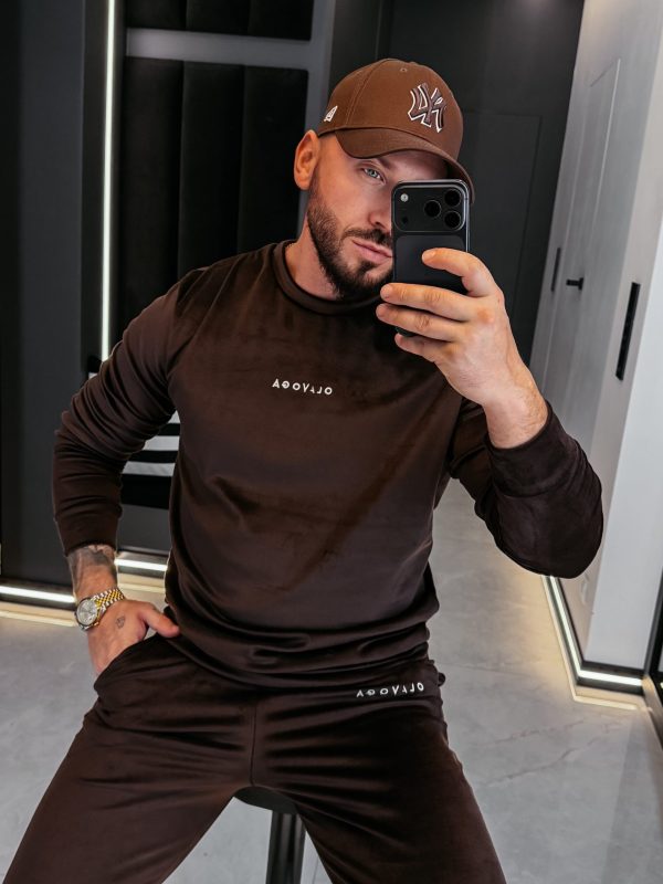 Komfortowy, ponadczasowy krój – przyjemna welurowa tkanina – długi rękaw – subtelne haftowane logo OLAVOGA – zwężająca się nogawka.