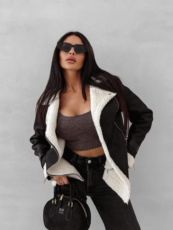 Kożuszek damski OLAVOGA SIIN czarny – miękkość, styl i luksus w codziennym wydaniu