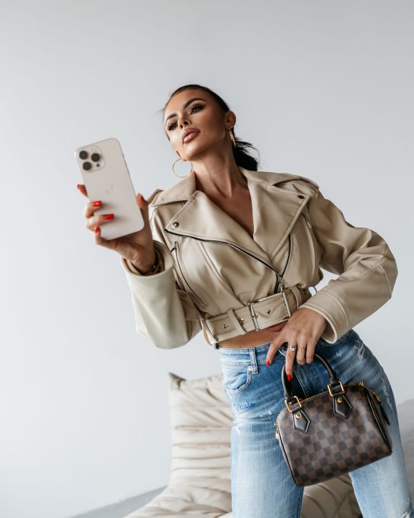 Kurtka ramoneska damska CELESTIA II OLAVOGA beżowa