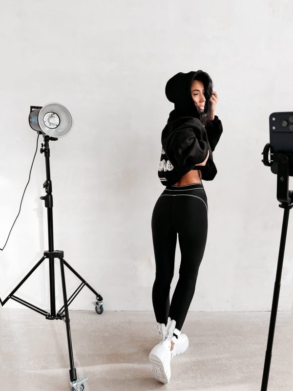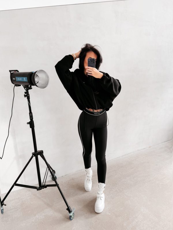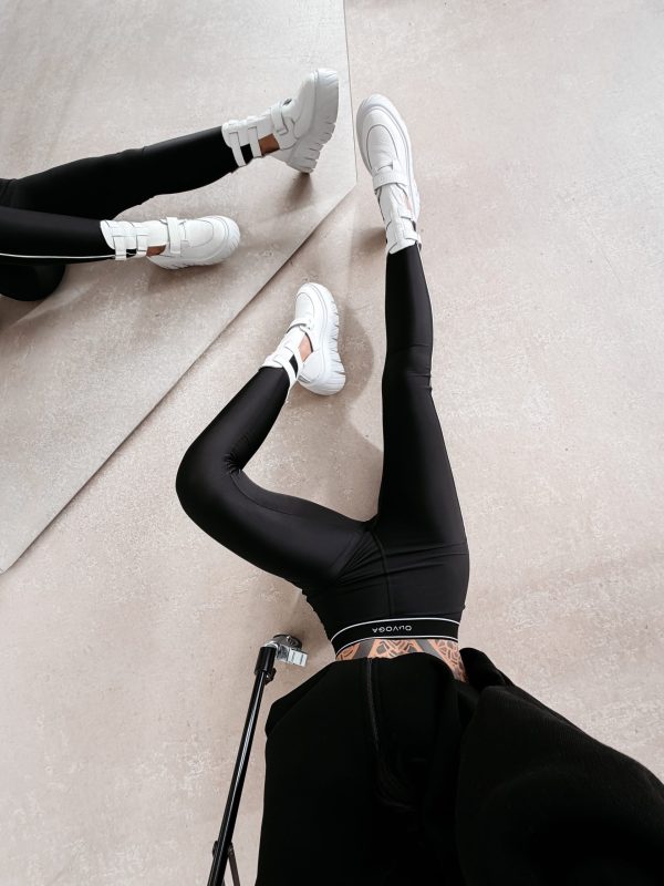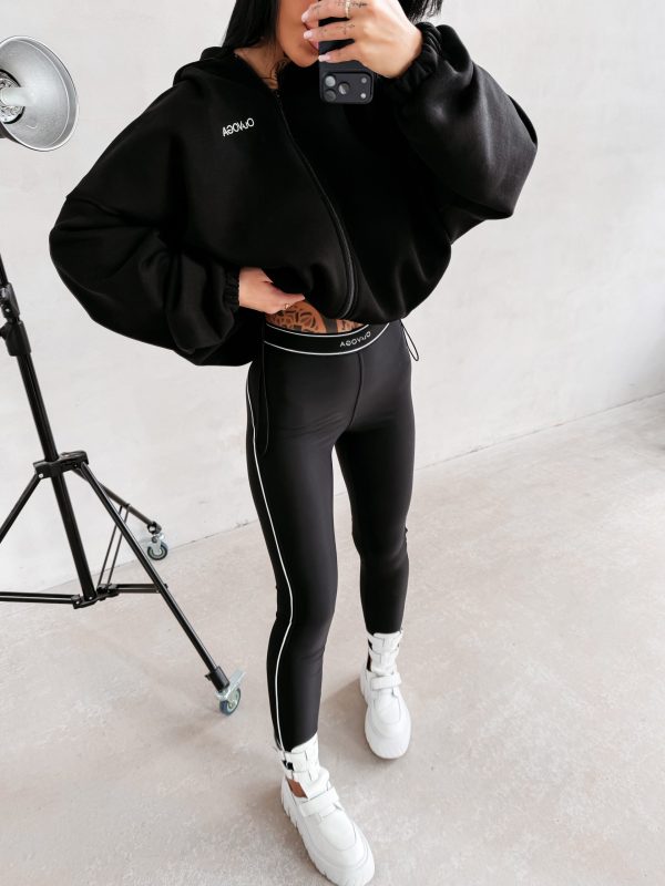 Idealnie dopasowane legginsy z wysokim stanem. Wykonane z wysokiej jakości elastycznego, miękkiego materiału. Nie prześwituje. Po bokach kontrastujące, białe lampasy. W pasie logo marki OLAVOGA. Ważne aspekty: idealnie przylegające, wysoki stan, nogawki zwężane ku dołowi, elastyczny materiał, w pasie logowana guma.