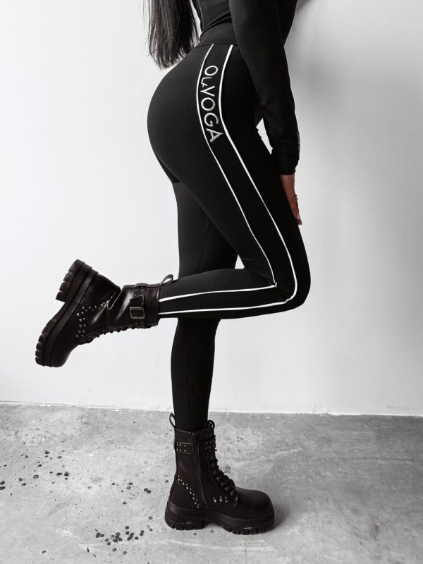 Model O La Voga CRISI wyróżniają dekoracyjne przeszycia na nogawkach, które nadają legginsom modelującego efektu oraz sportowego charakteru. Logowane lampasy po bokach subtelnie przyciągają wzrok, a jednocześnie podkreślają luksusowy styl marki OLAVOGA.