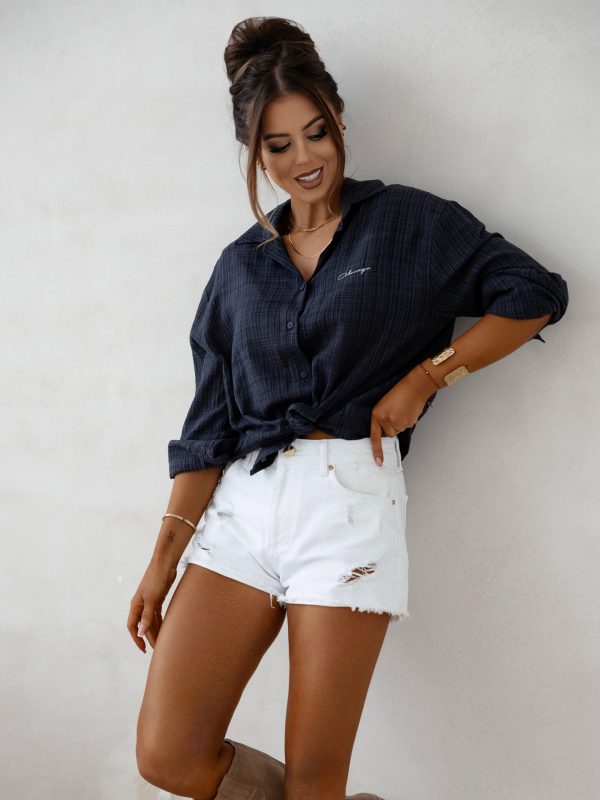 Dodatkowym atutem jest skórzana, logowana naszywka na tyle, która w elegancki sposób dopełnia całość i wyraża dbałość marki OLAVOGA o każdy szczegół. Efekt przetarć oraz szarpane brzegi nogawek nadają spodenkom wyrazistości i lekkości, dzięki czemu doskonale wpisują się w letnie stylizacje, podkreślając indywidualność i modowe wyczucie.
