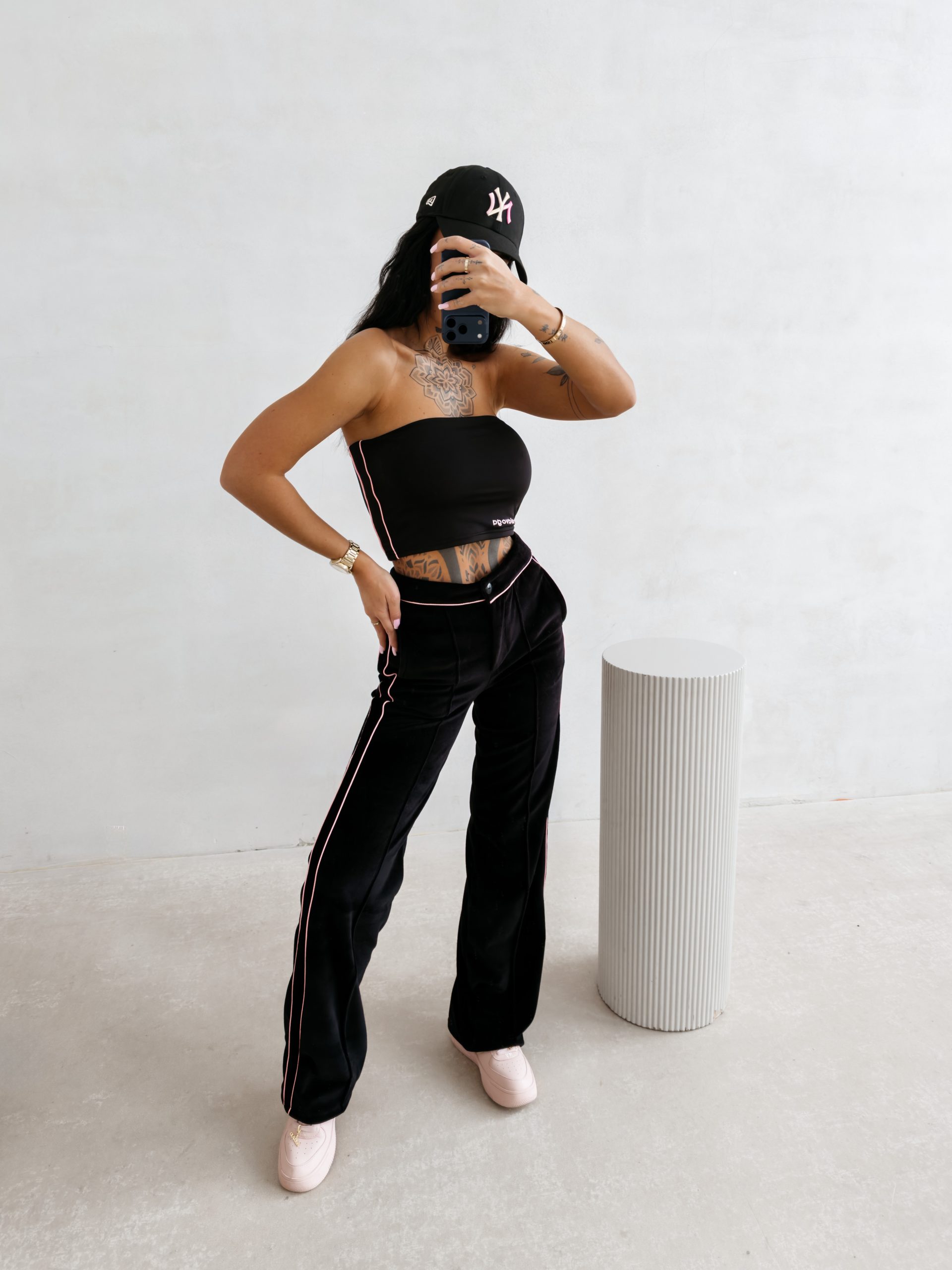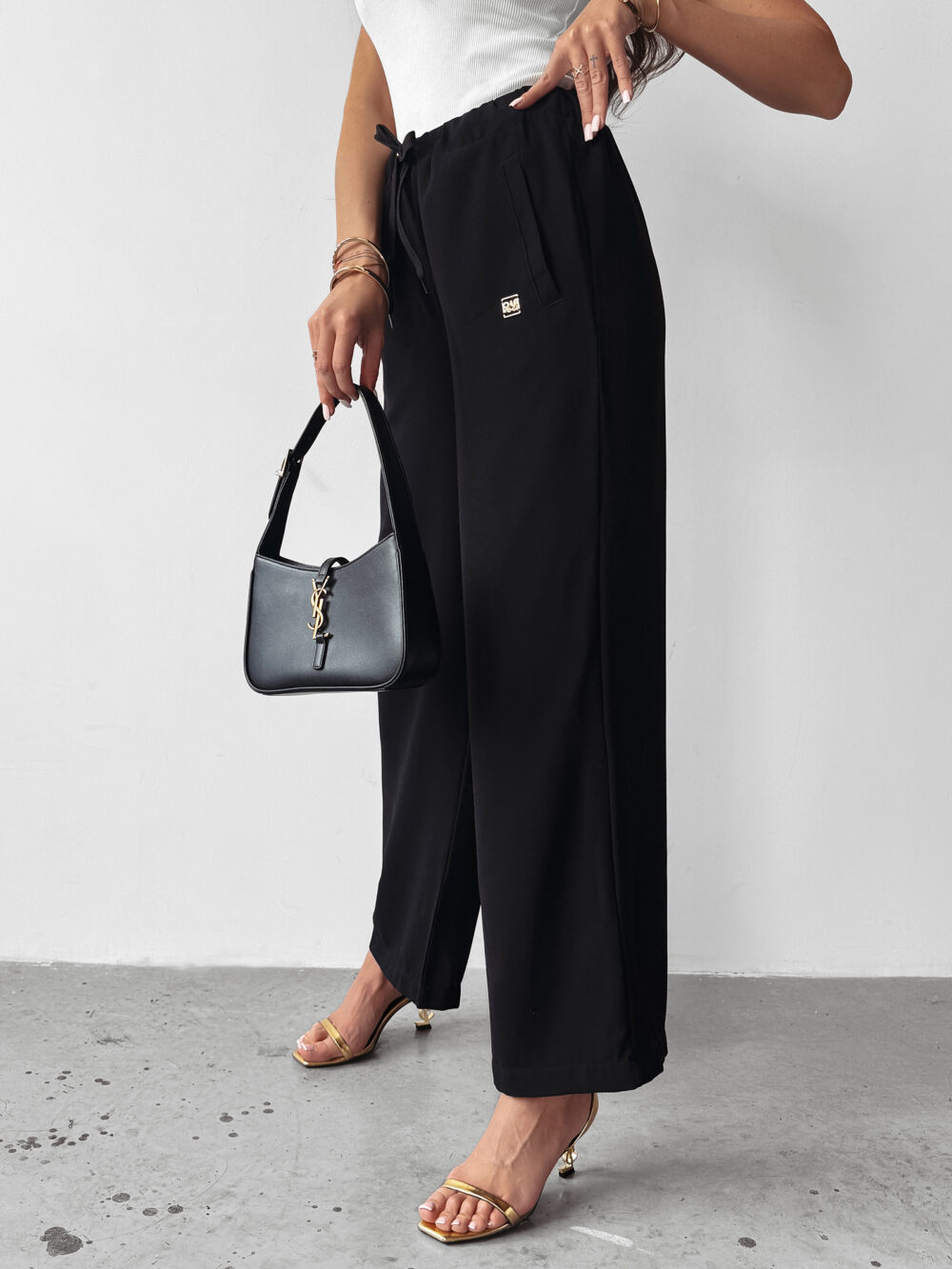 Wysoki stan spodni YUO marki OLAVOGA zapewnia stabilne trzymanie w talii oraz modelowanie sylwetki, dzięki czemu każda kobieta poczuje się w nich pewnie i komfortowo. Elastyczna guma w talii to gwarancja idealnego dopasowania, niezależnie od indywidualnej budowy ciała, a jednocześnie zwiększa swobodę ruchów. Dodatkowo ozdobne sznurki pełnią funkcję nie tylko praktyczną, ale i estetyczną, dodając spodniom modnego charakteru i nowoczesnego stylu.