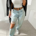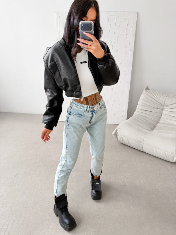 Dopasowany krój – prosta nogawka – denim o spranym wykończeniu – zapinane na logowany guzik i zamek – klasyczny fason z pięcioma kieszeniami – na tyle haftowane logo na kieszeni i u dołu nogawek w kolorze brązu – naszywka brązowa w pasie.