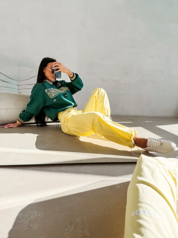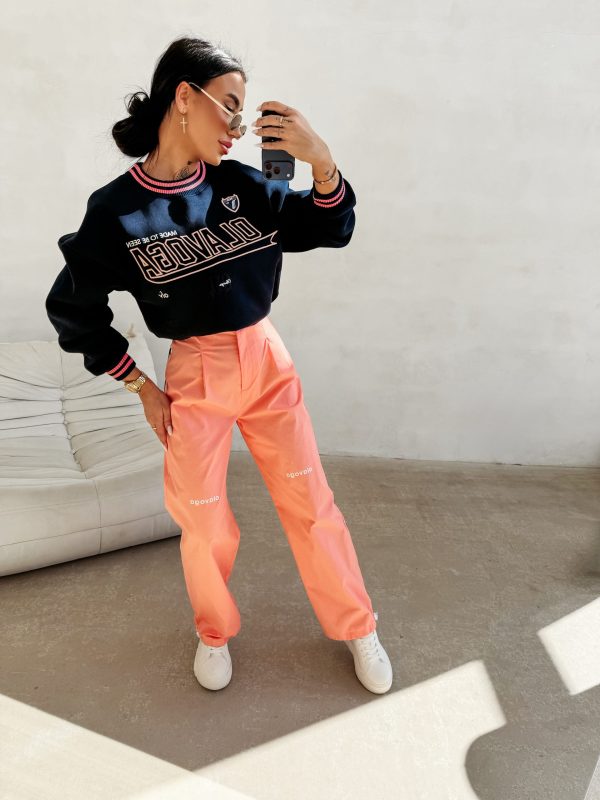 Luźny krój – wyższy stan – efektowne zakładki z przodu – zapięcie na suwak i guzik – logowanie na nogawkach z subtelnym logo OLAVOGA 3D – długa nogawka zakończona ściągaczem ze stoperami.