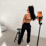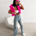Spodnie o luźnym, prostym kroju, wykonane z miękkiego, przyjemnego w dotyku materiału o welurowym wykończeniu. Model z wysokim stanem, zapinany na guzik oraz suwak, z dodatkowym wiązaniem w pasie zakończonym metalowymi oczkami i satynową tasiemką. Wzdłuż nogawek subtelne, kontrastowe lampasy. Na nogawce delikatny haft z logo marki OLAVOGA. Tworzą idealny komplet z topem LEYA i bomberką ELVIA.