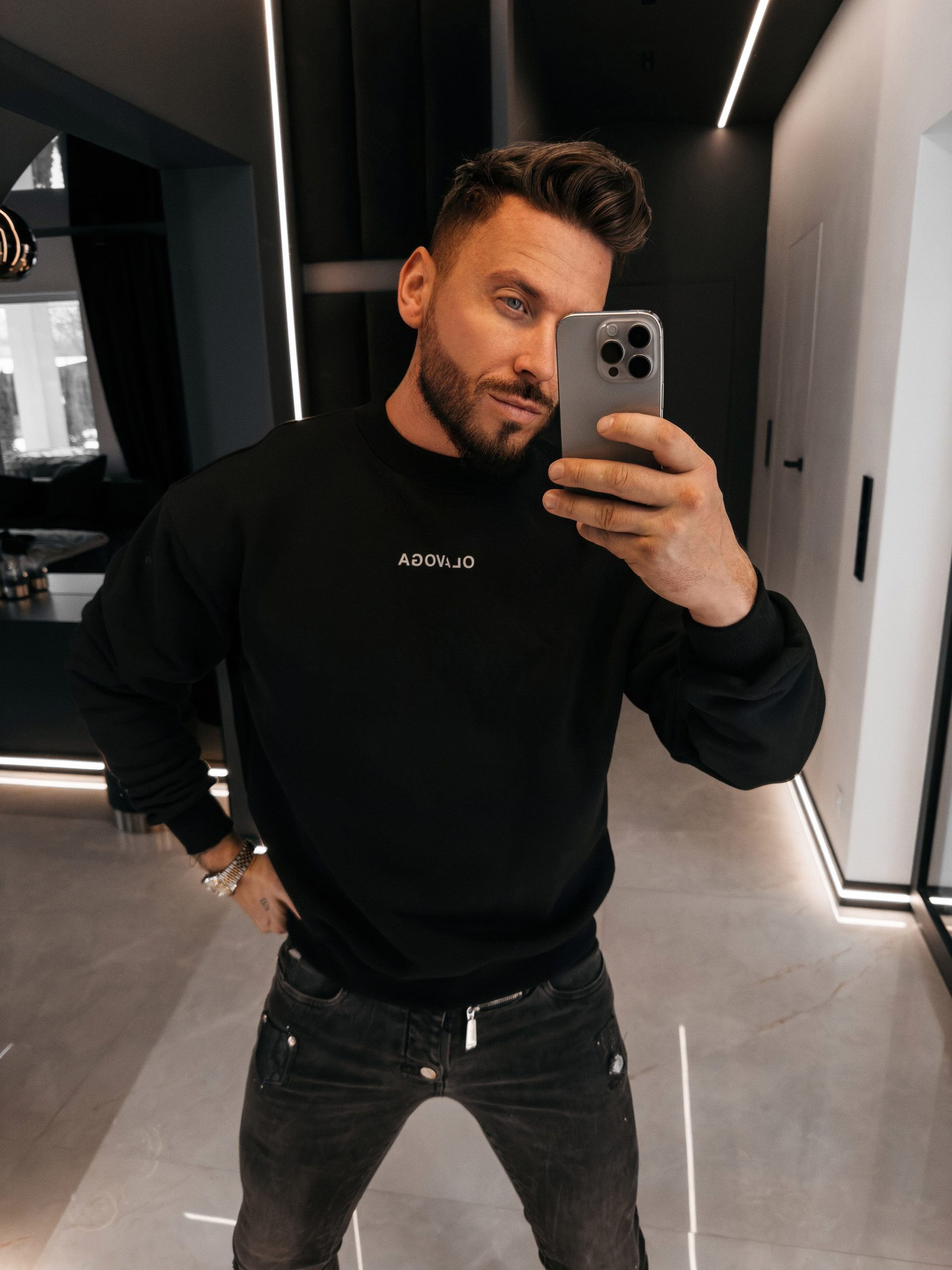 Swobodny krój – wysokogatunkowa tkanina – nogawki zwężane ku dołowi zakończone ściągaczem – regulacja w pasie ze sznurkiem – na przodzie minimalistyczne logo OLAVOGA – na nogawce pionowy haft