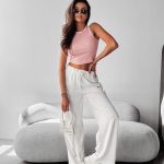 Materiał, z którego wykonano top, to wysokiej jakości bawełna z dodatkiem elastanu – tkanina, która pracuje z ciałem, nie krępując ruchów i zachowując swój pierwotny wygląd nawet po wielu praniach. To propozycja dla kobiet, które cenią sobie nie tylko estetykę, ale i praktyczne aspekty codziennego ubioru.
