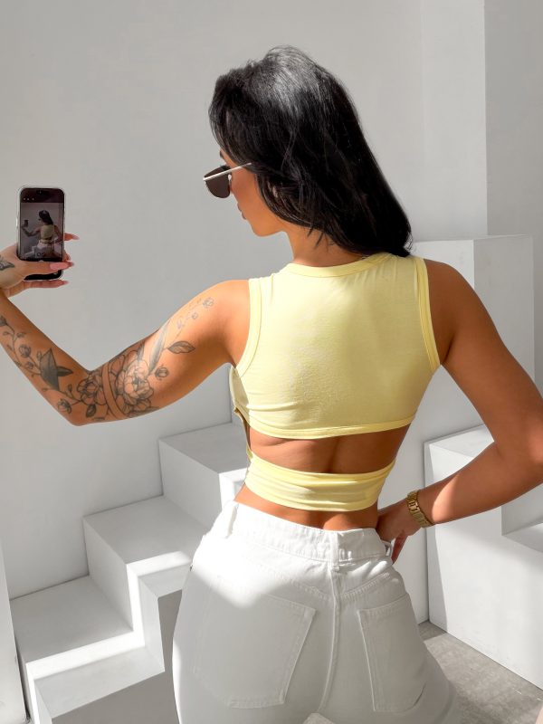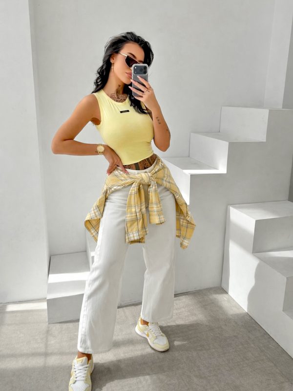 Slim fit – krótszy krój – elastyczna dzianina – okrągły dekolt – subtelna naszywka z logo na przodzie – tył z wycięciem podkreślającym linię pleców.